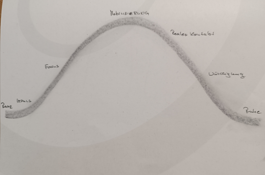 Spannend, dass wir uns im Rahmen dieses Wochenendes noch einmal mit dem Kontakterregungsbogen oder der „Gestaltwelle“ aus der Gestalttherapie beschäftigt haben. Dieses Modell ist in vielerlei Hinsicht so passend für meinen Oktober.
