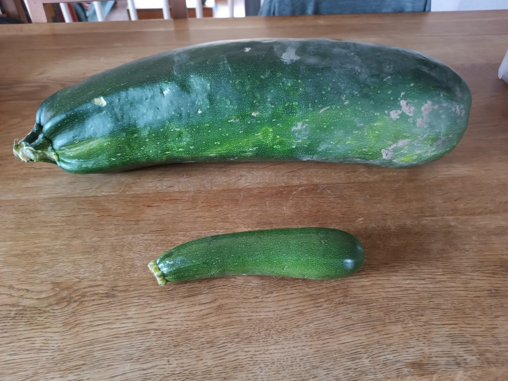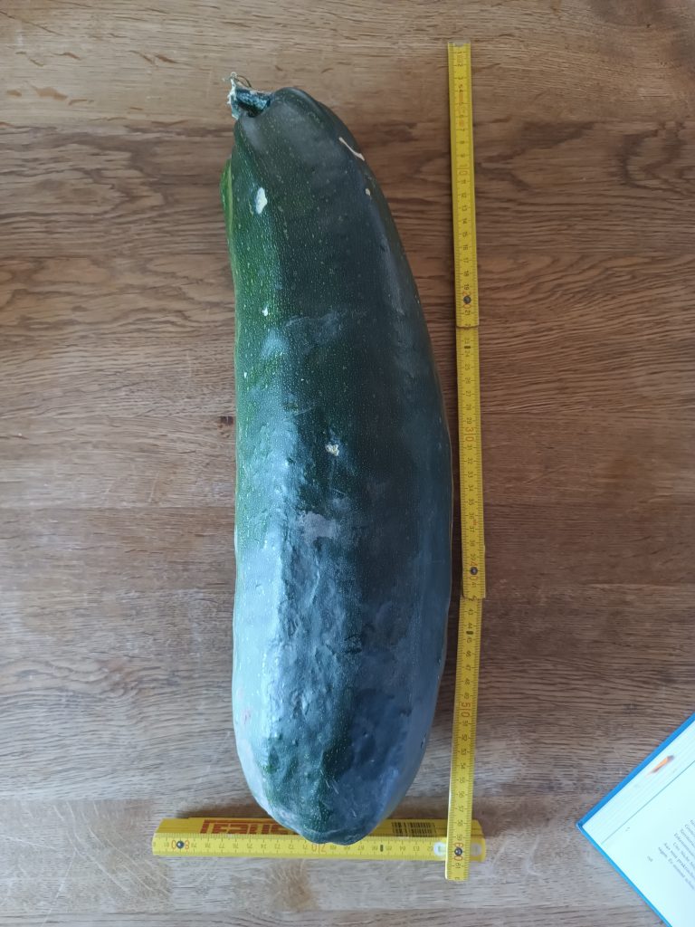 Ich musste schmunzeln, da ich kurz vorher von einem Bekannten einen Text zur Geschichte der Zucchini in deutschen Küchen und Gärten erhalten hatte – inklusive der Überlegung, in Zucchini-Jahren, lieber einen Umweg zu gehen, als von freundlichen Gartenbesitzern mit noch mehr davon bedacht zu werden…