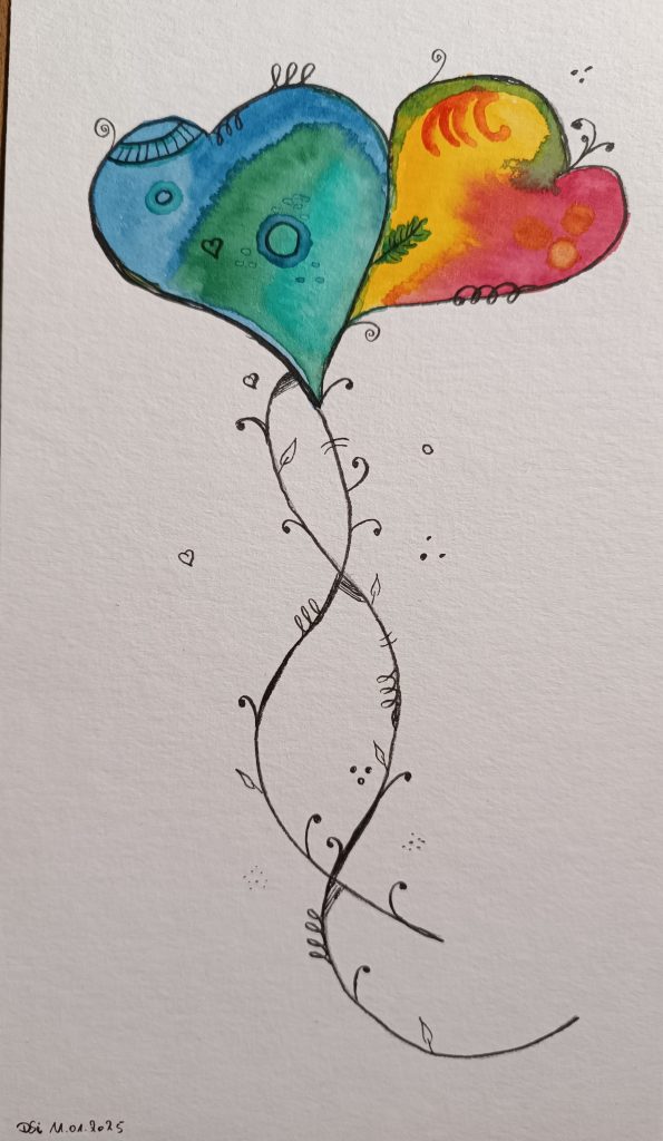 Ich habe es geschafft, mich davon frei zu machen => „einschränkender Glaubenssatz adé!“. Seit Mitte Dezember zeichne ich fast täglich und ich besitze inzwischen auch einen gut genutzten Aquarellkasten und ein zur Hälfte gefüllte Skizzenbuch. Das macht mich gerade vollkommen frei und glücklich und hilft mir, in meinen freien Zeiten und dann, wenn nichts mehr in den Kopf geht, vollkommen zu entspannen und zu mir zu kommen.