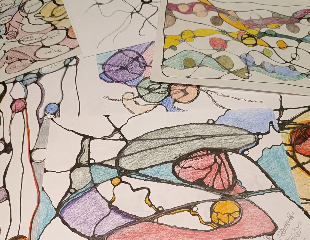 Begonnen hat es mal wieder auf einem Herbstfest der CoreDynamik. Auch wenn ich beschlossen habe, erst einmal eine „coredynamische Pause“ einzulegen: Ich komme nicht darum herum, dass mir diese Ausbildung so viele Wege eröffnet hat. Zum ersten Mal hatte ich auf dem Herbstfest nach der kreativen Einheit ein Ergebnis, das mir Freude gemacht hat. Zwei Monate später kam dann die Erinnerung an einen kleinen Impuls zur Neurographik, den ich im Rahmen eines Coaching-Salons einmal bekommen hatte und ich habe spontan recherchiert, was es damit genau auf sich hatte.