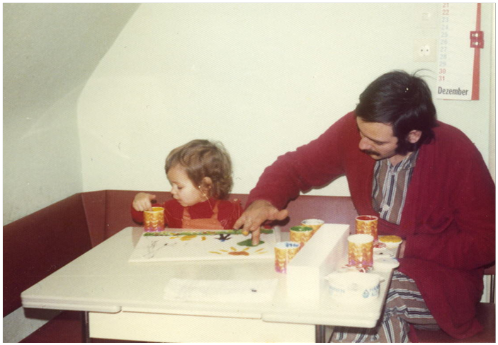 Nachdem ich jetzt fast 54 Jahre lang mit dem Glaubenssatz „Ich kann nicht malen und zeichnen!“ gelebt habe – wobei, so ganz stimmt das nicht, bevor mir jemand gesagt hat, wie es aussehen muss, und dass meine Ergebnisse eben nicht so aussehen, hatte ich viel Spaß damit, was Bilder von mir und meinem Vater mit meinem Fingerfarbkasten (Weihnachten 1972) beweisen.